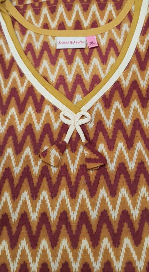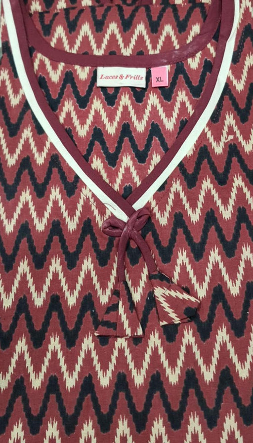 View full detailsMaroon Batik Pure Cotton Sleeveless Nighty. Pure Durable Cotton | Laces and Frills