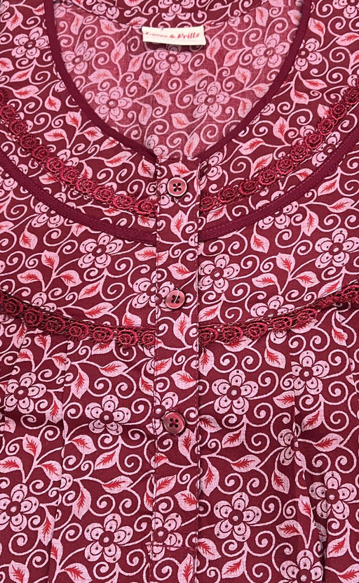View full detailsMaroon Embroidery Soft Cotton Nighty. Soft Breathable Fabric | Laces and Frills