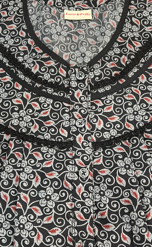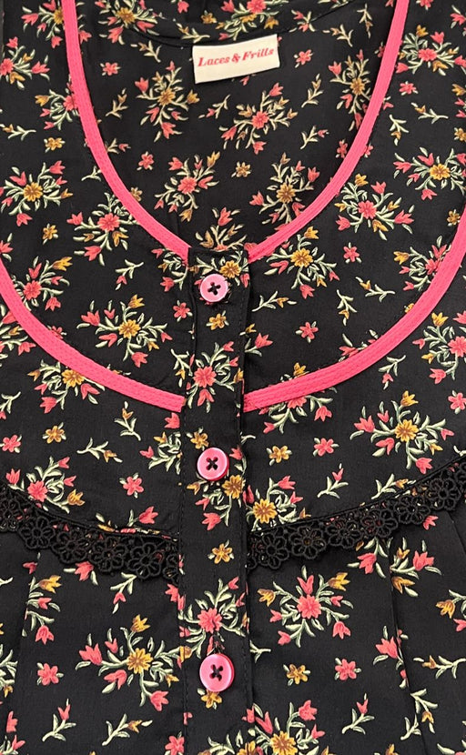 View full detailsBlack Embroidery Soft Cotton Nighty. Soft Breathable Fabric | Laces and Frills