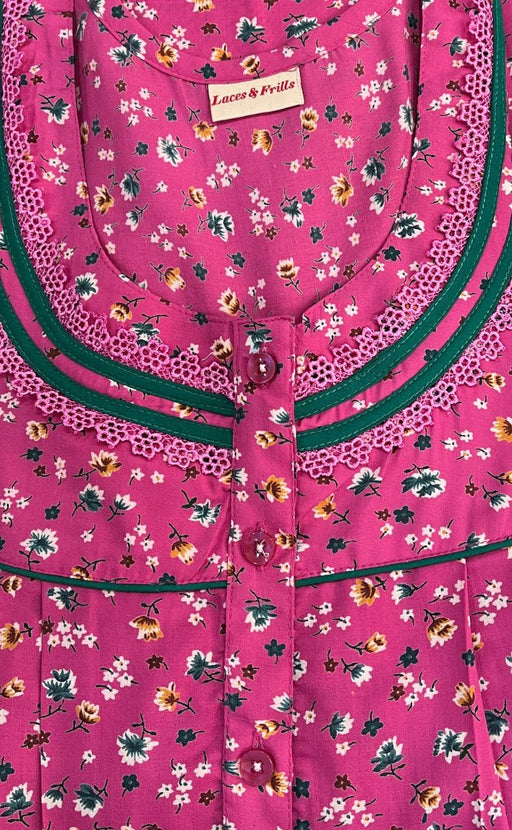 View full detailsHot Pink Embroidery Soft Cotton Nighty. Soft Breathable Fabric | Laces and Frills