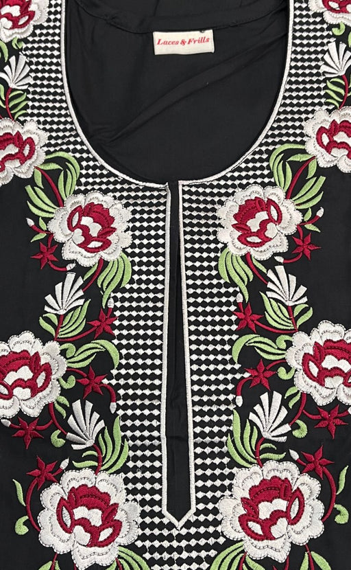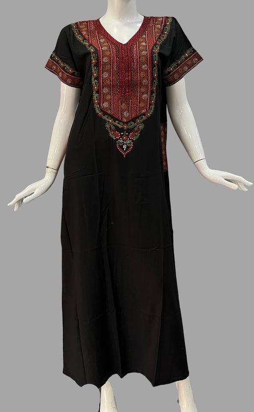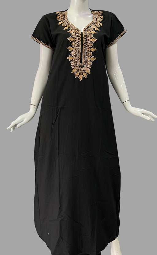 View full detailsBlack Bhopali Embroidery Soft Cotton Nighty. Soft Breathable Fabric | Laces and Frills