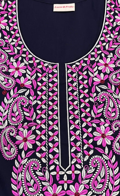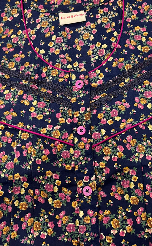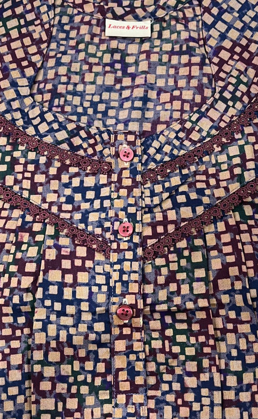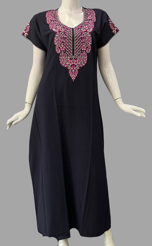 View full detailsNavy Blue Bhopali Embroidery Soft Cotton Nighty. Soft Breathable Fabric | Laces and Frills