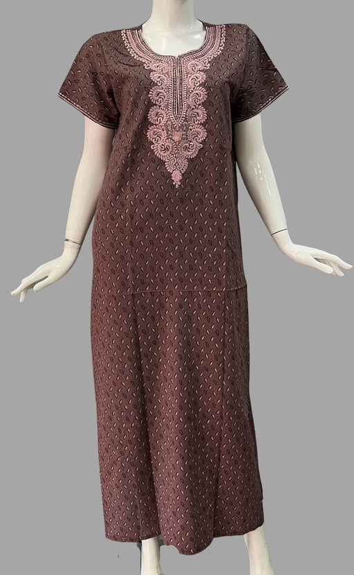 View full detailsDark Maroon Embroidery Soft Cotton Nighty. Soft Breathable Fabric | Laces and Frills