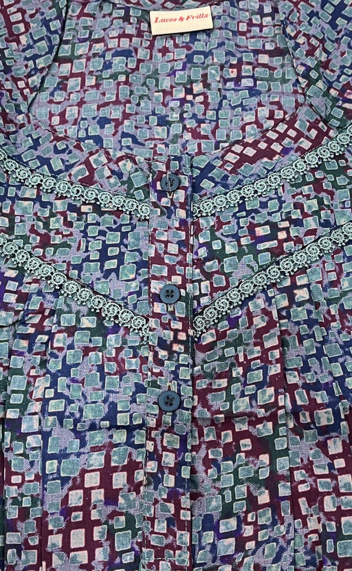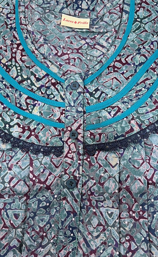 View full detailsTeal Blue Bhopali Embroidery Soft Cotton Nighty. Soft Breathable Fabric | Laces and Frills