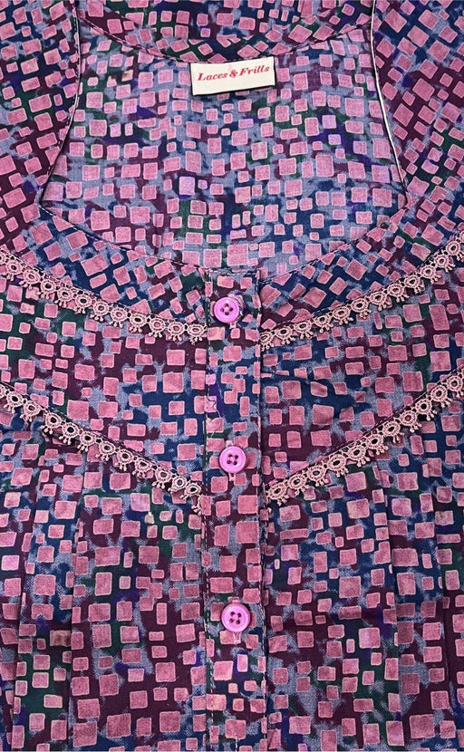 View full detailsIndigo Blue Bhopali Embroidery Soft Cotton Nighty. Soft Breathable Fabric | Laces and Frills