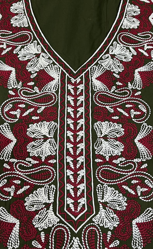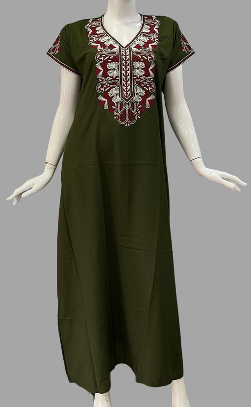 View full detailsOlive Green Bhopali Embroidery Soft Cotton Nighty. Soft Breathable Fabric | Laces and Frills
