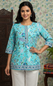Sea Green Garden Jaipur Cotton Short Kurti. Pure Versatile Cotton. | Laces and Frills