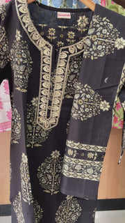 Black Garden Jaipur Cotton Kurti With Pant And Dupatta Set. Pure Versatile Cotton. | Laces and Frills