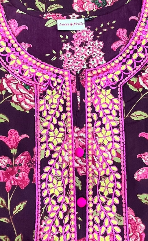 View full detailsDark Maroon Garden Jaipur Cotton Kurti With Pant And Dupatta Set. Pure Versatile Cotton. | Laces and Frills