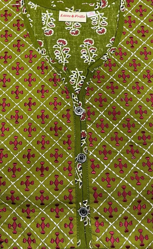 View full detailsOlive Green Embroidery Soft Cotton Nighty. Soft Breathable Fabric | Laces and Frills