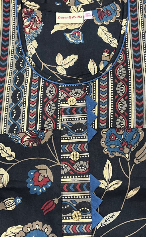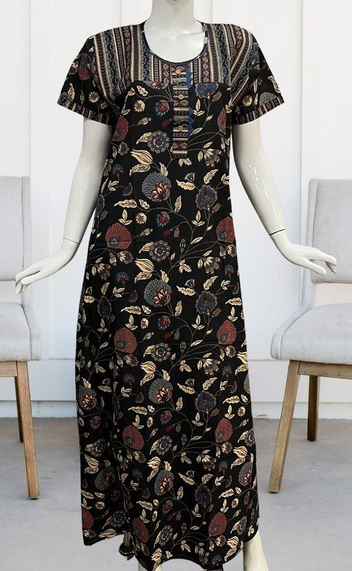 View full detailsBlack Embroidery Soft Cotton Nighty. Soft Breathable Fabric | Laces and Frills