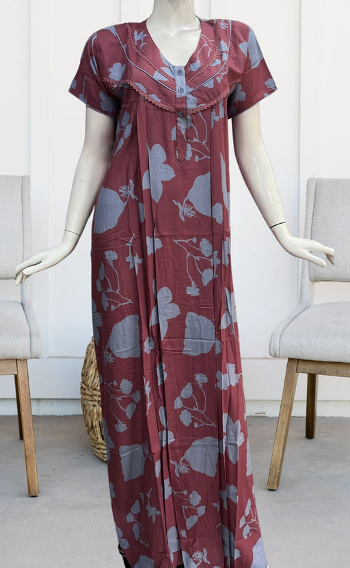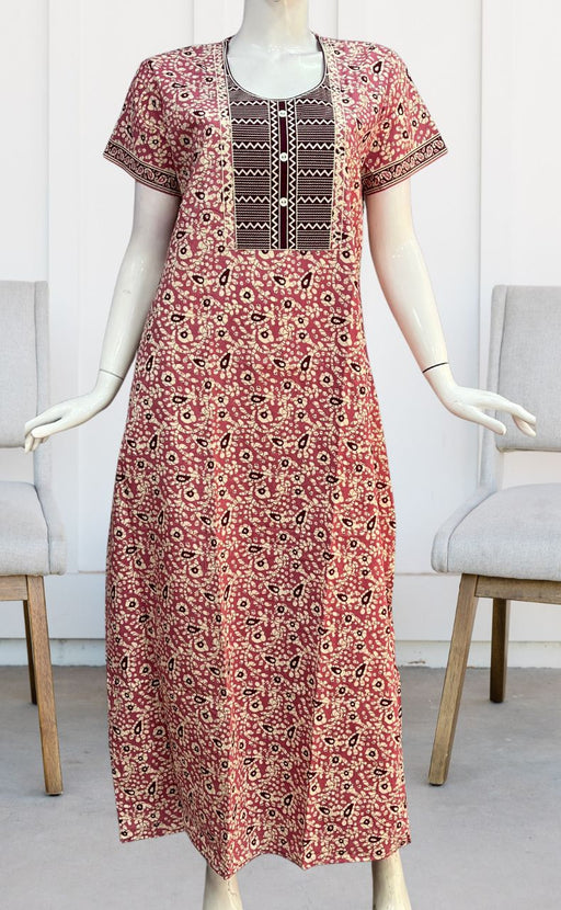 View full detailsDark Peach Embroidery Soft Cotton Nighty. Soft Breathable Fabric | Laces and Frills