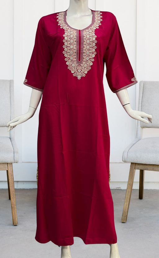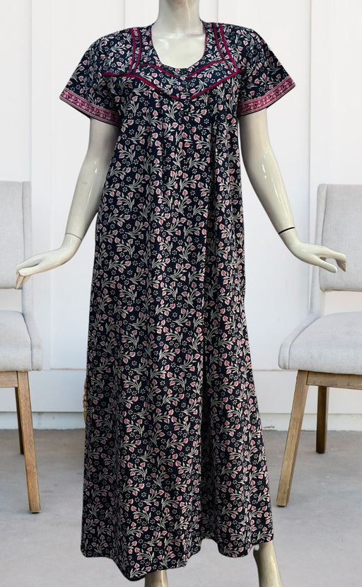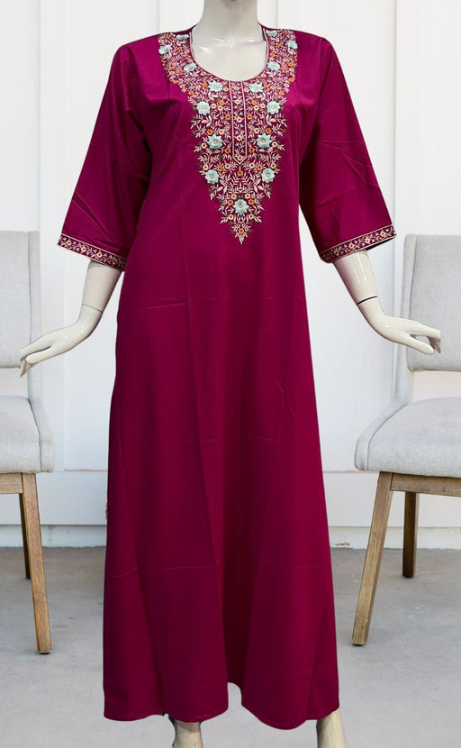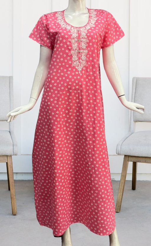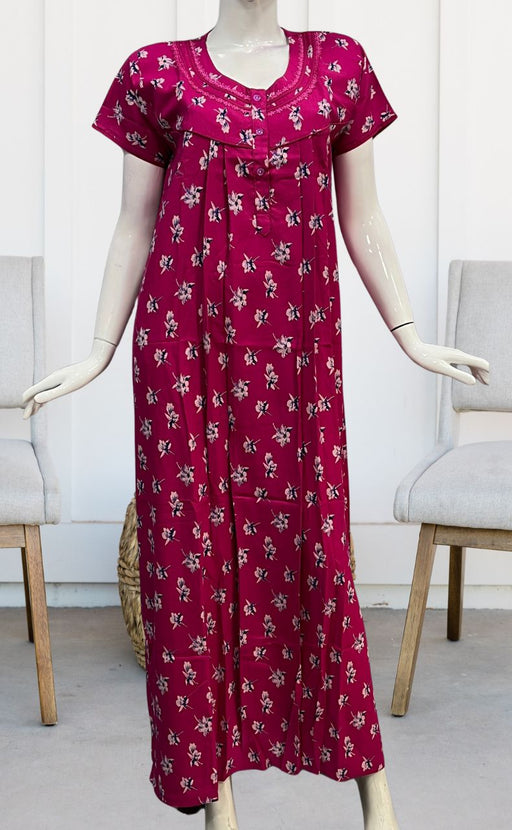 View full detailsRani Pink Bhopali Embroidery Soft Cotton Nighty. Soft Breathable Fabric | Laces and Frills
