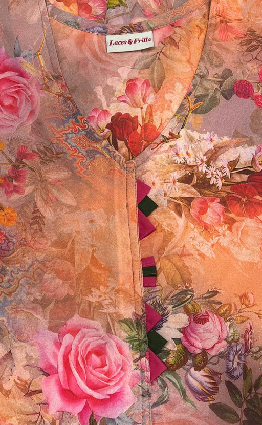 View full detailsPeach Floral Soft Cotton Nighty. Soft Breathable Fabric | Laces and Frills