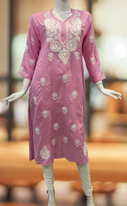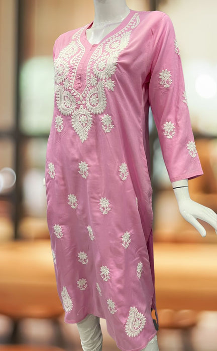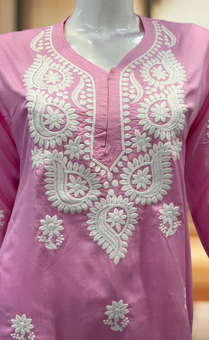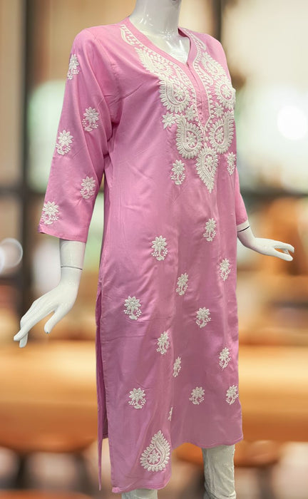 Baby Pink Chikankari Kurti. Flowy Rayon Fabric. | Laces and Frills
