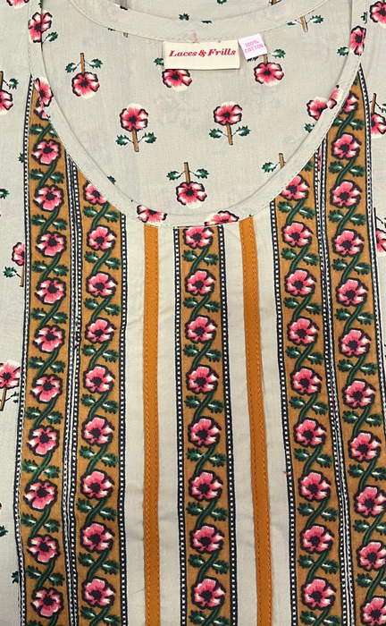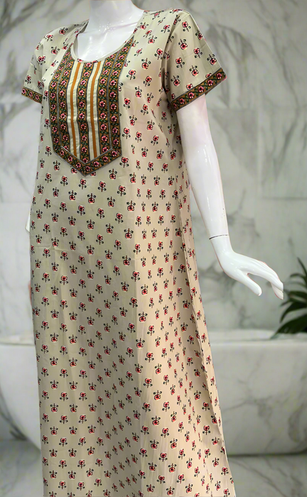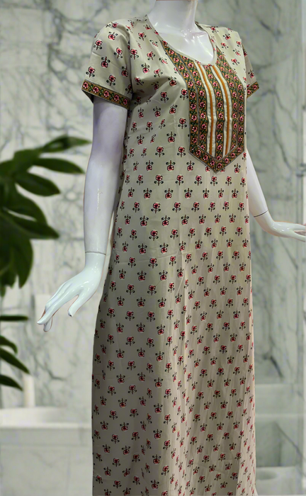 Beige Tiny Floral Garden Pure Cotton Nighty. Pure Durable Cotton | Laces and Frills