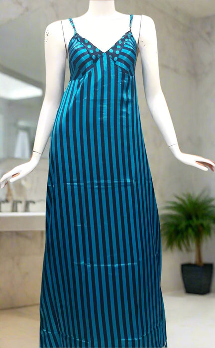 Black/Blue Polka Dot Satin House Coat Set .. Soft Silky Satin | Laces and Frills