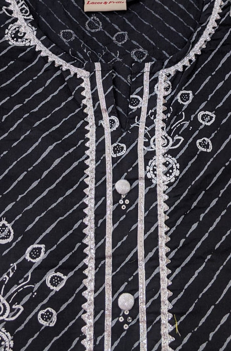 Black Bouquet Motif Jaipuri Cotton Kurti.Pure Versatile Cotton. | Laces and Frills