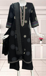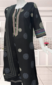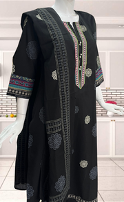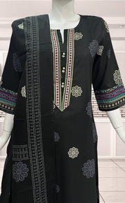 Black Floral Jaipur Cotton Kurti With Pant And Dupatta Set. Pure Versatile Cotton. | Laces and Frills