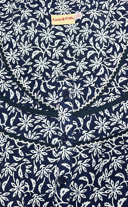 Blue Floral Pure Cotton Nighty. Pure Durable Cotton | Laces and Frills