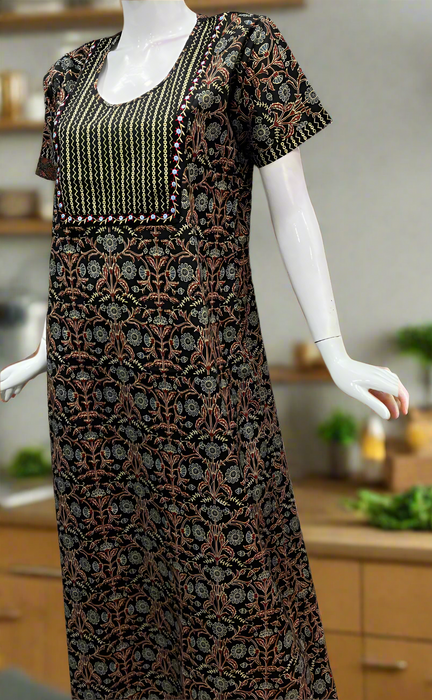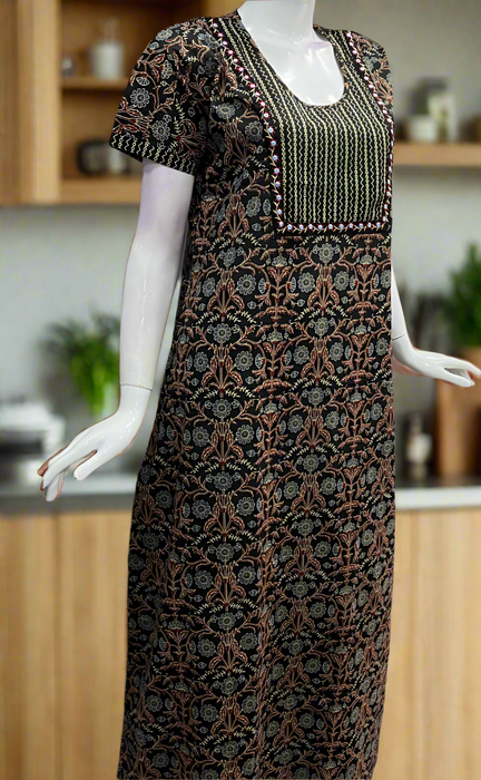 Black Floral Pure Cotton Nighty. Pure Durable Cotton | Laces and Frills