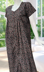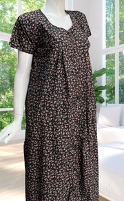 Black Garden Full Open Soft Cotton Nighty. Soft Breathable Fabric | Laces and Frills