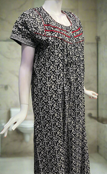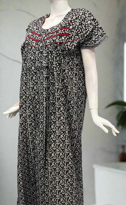 Fabric - "Pure cotton" - The cotton used in the garment is pure. Cotton is very popular because it is versatile and durable and ideal for making nighties for hot and humid conditions.
