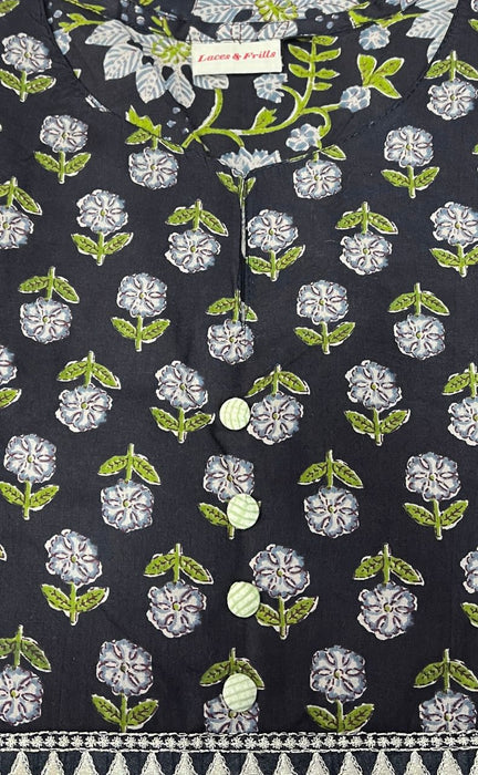 Black/Green Floral Jaipuri Cotton Kurti. Pure Versatile Cotton. | Laces and Frills