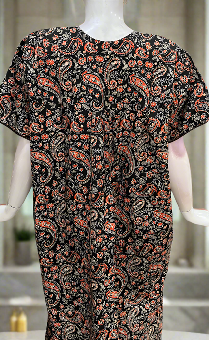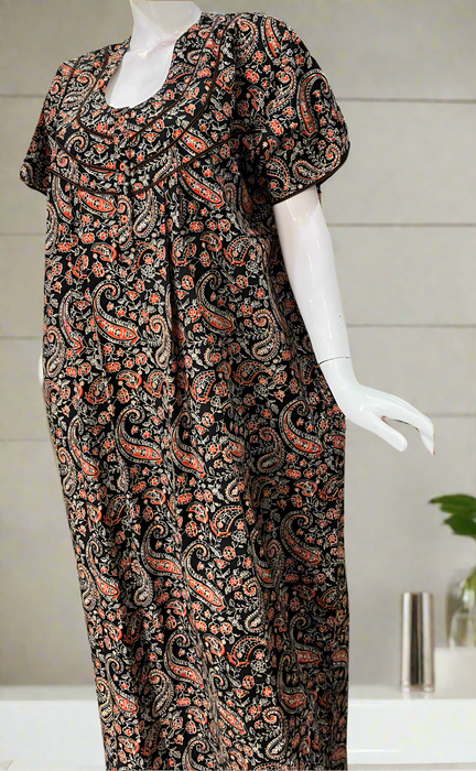 Black Paisley Print Pure Cotton Nighty. Pure Durable Cotton | Laces and Frills