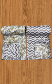 Fabric - The blankets are 100% Cotton (MULMUL). They are three-layered. The top and bottom layers are printed cotton and the middle layer is Soft Flannel which makes it soft, cozy & lightweight.
