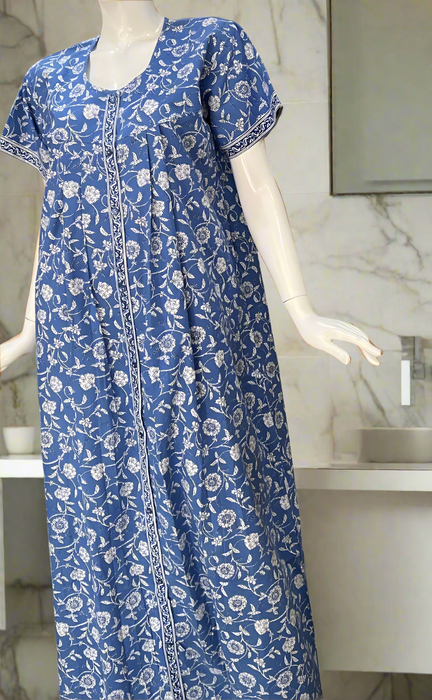 Blue Garden Full Open Pure Cotton Nighty. Pure Cotton | Laces and Frills