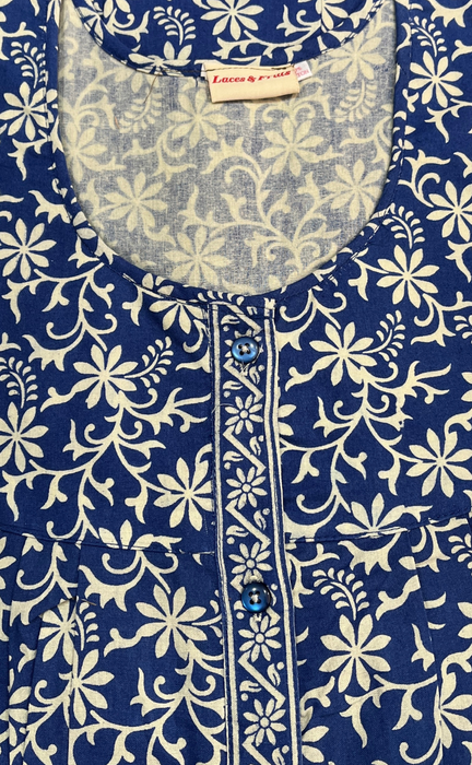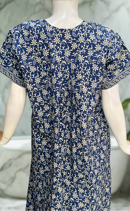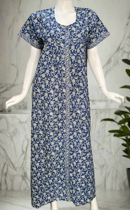 Blue Garden Full Open Pure Cotton Nighty. Pure Cotton | Laces and Frills