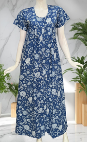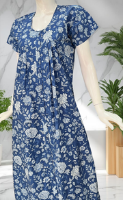 Blue Garden Full Open Pure Cotton Nighty. Pure Cotton | Laces and Frills