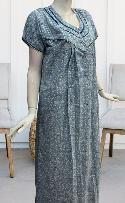 Blue Garden Pure Cotton Feeding Nursing Nighty . Pure Durable Cotton | Laces and Frills