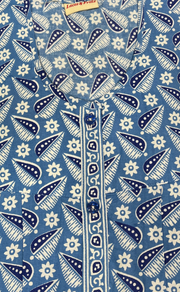 Blue Leafy Full Open Pure Cotton Nighty. Pure Cotton | Laces and Frills
