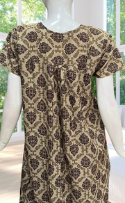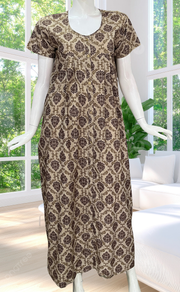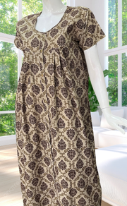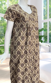 Cream Ethnic Print Full Open Soft Cotton Nighty. Soft Breathable Fabric | Laces and Frills