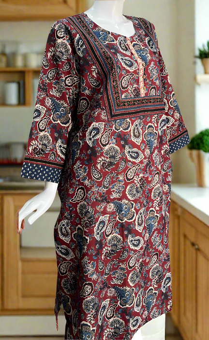 Dark Maroon Garden Jaipuri Cotton Kurti. Pure Versatile Cotton. | Laces and Frills