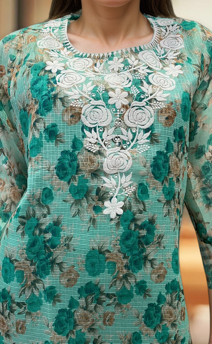 Discover our Machine-Embroidered Chikankari Kurti, a fusion of tradition and modern convenience. This Kurti beautifully captures Chikankari embroidery's essence through precision machine craftsmanship.