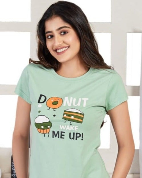Green Donut Women's Cotton Printed Shorts Set | Pure Cotton Hosiery | Laces and Frills
