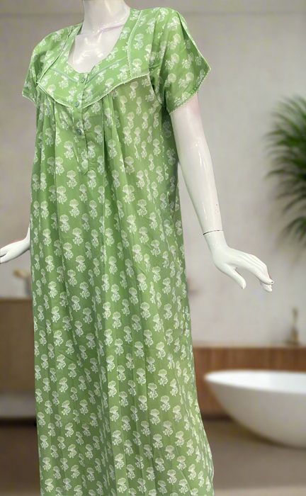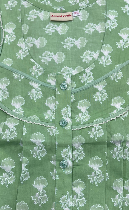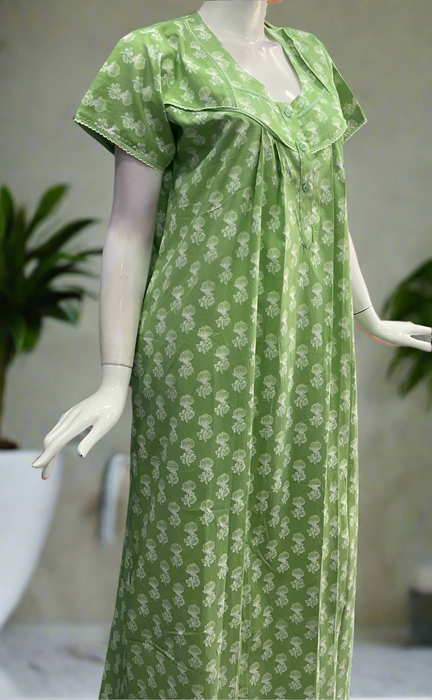 Green Floral Pure Cotton Feeding Nursing Nighty . Pure Durable Cotton | Laces and Frills