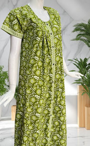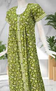 Green Garden Full Open Pure Cotton Nighty. Pure Cotton | Laces and Frills