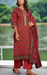 Maroon Ikkat Jaipur Cotton Kurti With Pant And Dupatta Set. Pure Versatile Cotton. | Laces and Frills