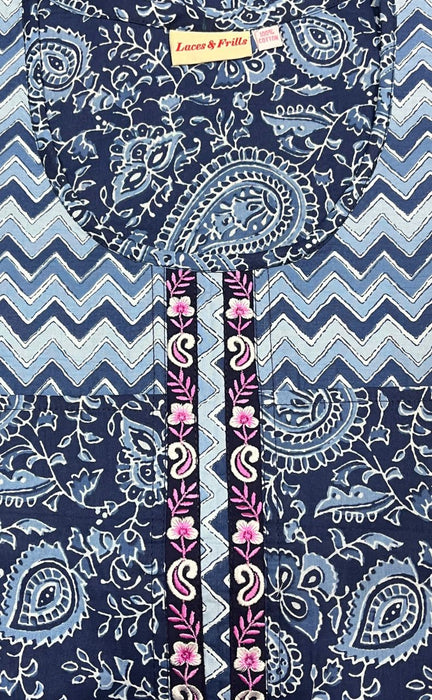Navy Blue Garden Pure Cotton Nighty. Pure Durable Cotton | Laces and Frills