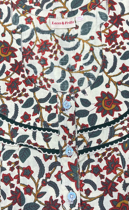 Off White/Green Garden Pure Cotton Nighty. Pure Durable Cotton | Laces and Frills