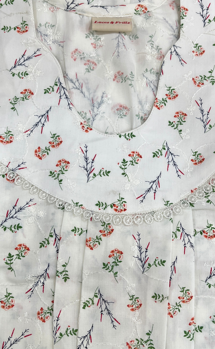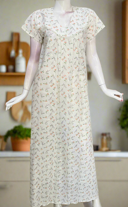 Off White/Orange Floral Boutique Cotton Nighty . Pure Durable Cotton | Laces and Frills