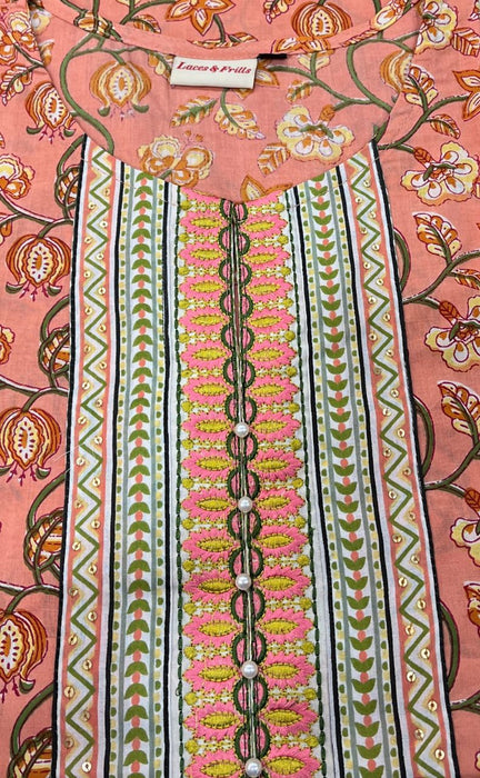 Peach Floral Jaipuri Cotton Kurti. Pure Versatile Cotton. | Laces and Frills