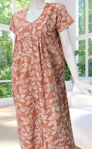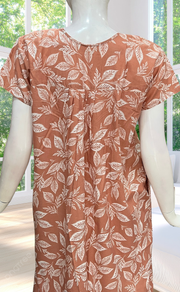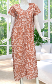 Peach Leafy Full Open Soft Cotton Nighty. Soft Breathable Fabric | Laces and Frills