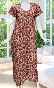 Peach Leafy Full Open Soft Cotton Nighty. Soft Breathable Fabric | Laces and Frills