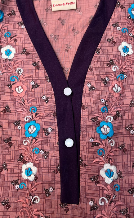Peach Tiny Flora Soft Cotton Nighty. Soft Breathable Fabric | Laces and Frills