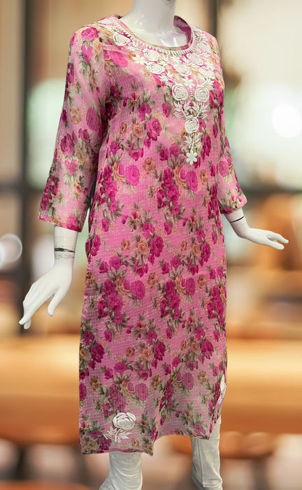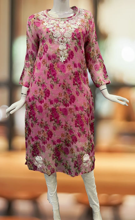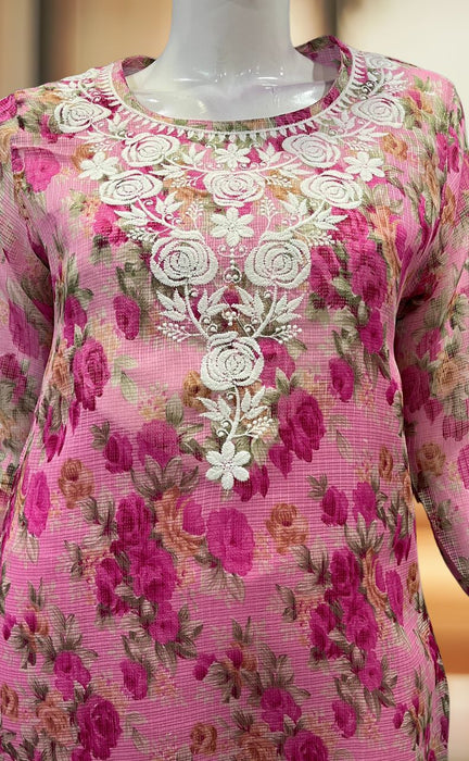 Pink Chikankari Kurti. Kota Doria Fabric. | Laces and Frills